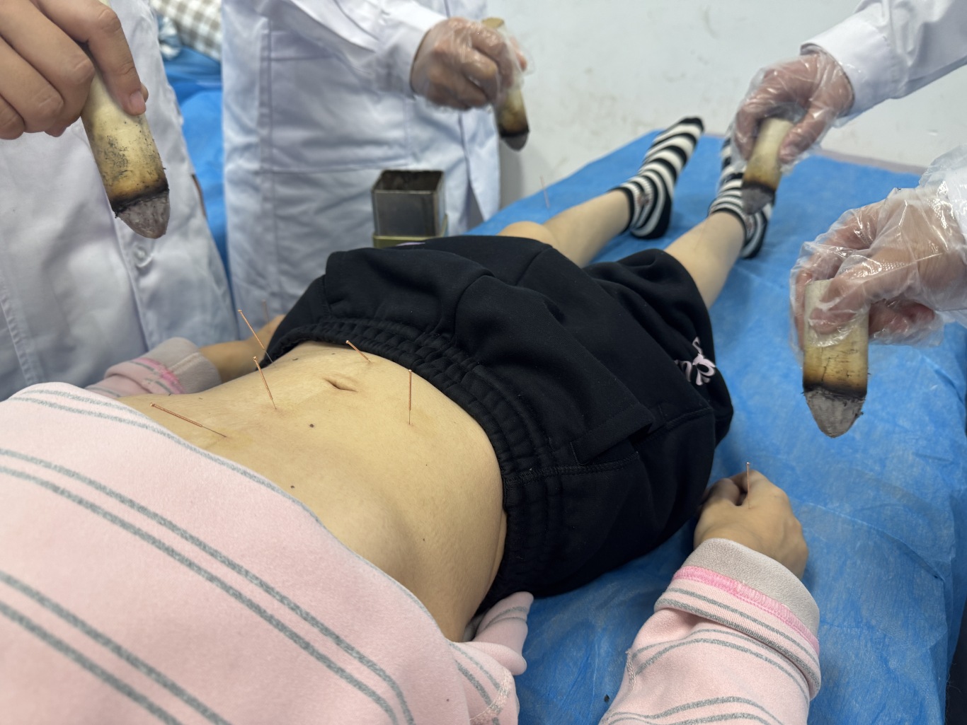 针灸治疗是中医传统疗法中的瑰宝,它有着悠久的历史和独特的理论基础。中医师们在进行针灸治疗时,会根据师生们的具体症状和体质,选择合适的穴位进行刺激。他们手法娴熟,进针、捻针、留针等每一个动作都精准到位。对于一些因为流感而导致鼻塞的同学,中医师会针刺迎香穴等穴位,刺激穴位后,鼻子很快就会通畅起来,呼吸也变得顺畅了。对于头痛的同学,中医师会选择合适的头部穴位进行针刺,能够迅速缓解头痛症状。这种非药物疗法,不仅避免了药物可能带来的副作用,还让师生们亲身感受到了中医的魅力。许多同学在接受治疗后,对中医产生了浓厚的兴趣,开始主动了解中医文化和针灸知识。艾灸和针灸疗法就像两颗璀璨的星星,在此次流感防控中闪耀着独特的光芒。